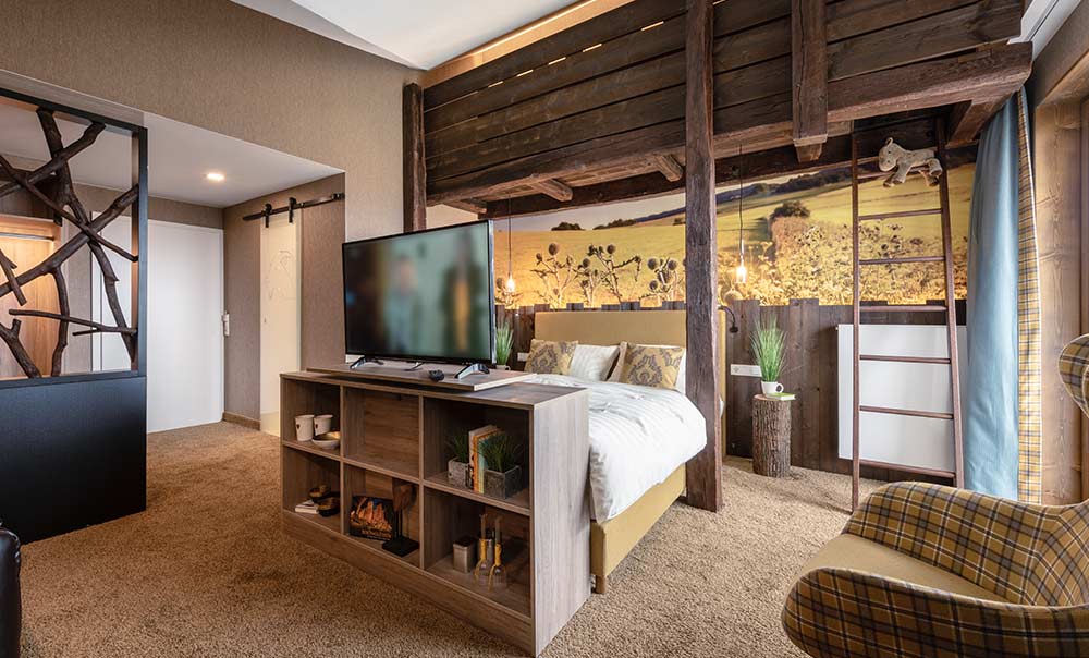 - Aufbettung Heuboden über Leiter erreichbar, für maximal 2 Kinder bis 160cm möglich